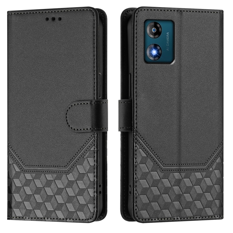 Funda de Cuero Rfid con Relieve en Panal para Motorola Moto E13 2023 4G (Negra)