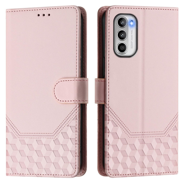 Funda de Cuero RFID con Relieve en Panal para Motorola Moto G 5G 2022 (Rosa)