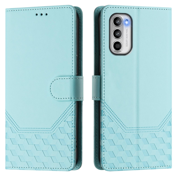 Funda de Cuero RFID con Relieve en Panal para Motorola Moto G 5G 2022 (Verde Menta)