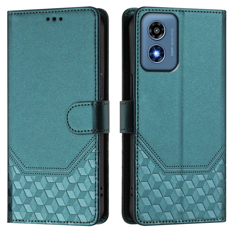 Funda de Cuero RFID con Relieve en Panal para Motorola Moto G Play 4G (2024) (Verde Pavo Real)