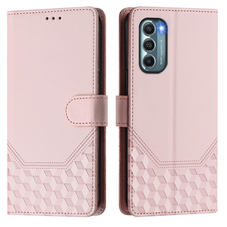 Funda de Cuero RFID con Relieve en Panal para Motorola Moto G Stylus 2022 5G (Rosa)