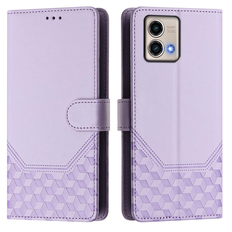 Funda de Cuero RFID con Relieve en Panal para Motorola Moto G Stylus 5G (2023) (Morado Claro)