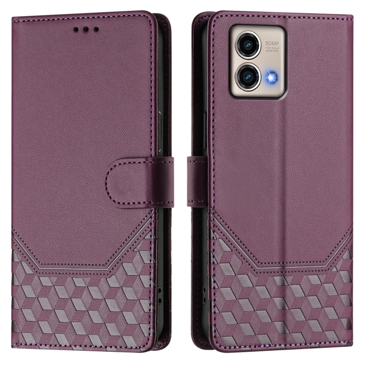 Funda de Cuero Rfid con Relieve en Panal para Motorola Moto G Stylus 5G (2023) (Violeta)