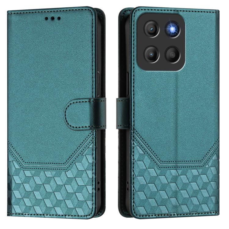 Funda de Cuero Rfid con Relieve en Panal para Motorola Moto G15 (Verde Pavo Real)