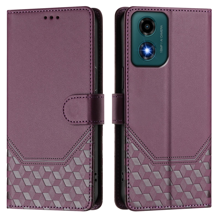 Funda de Cuero Rfid con Relieve en Panal para Motorola Moto G24 4G/G04 4G (Violeta)