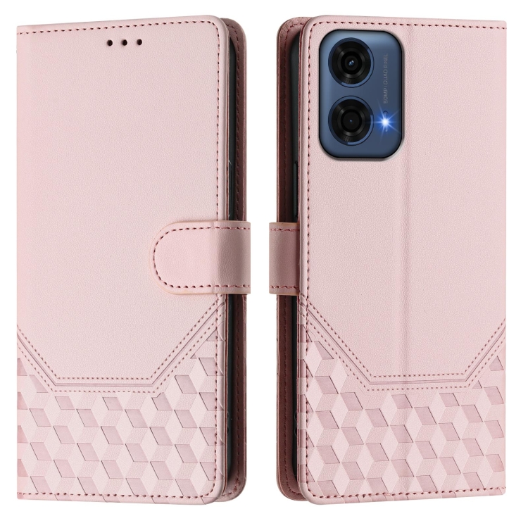 Funda de Cuero Rfid con Relieve en Panal para Motorola Moto G24 Power 4G (Rosa)