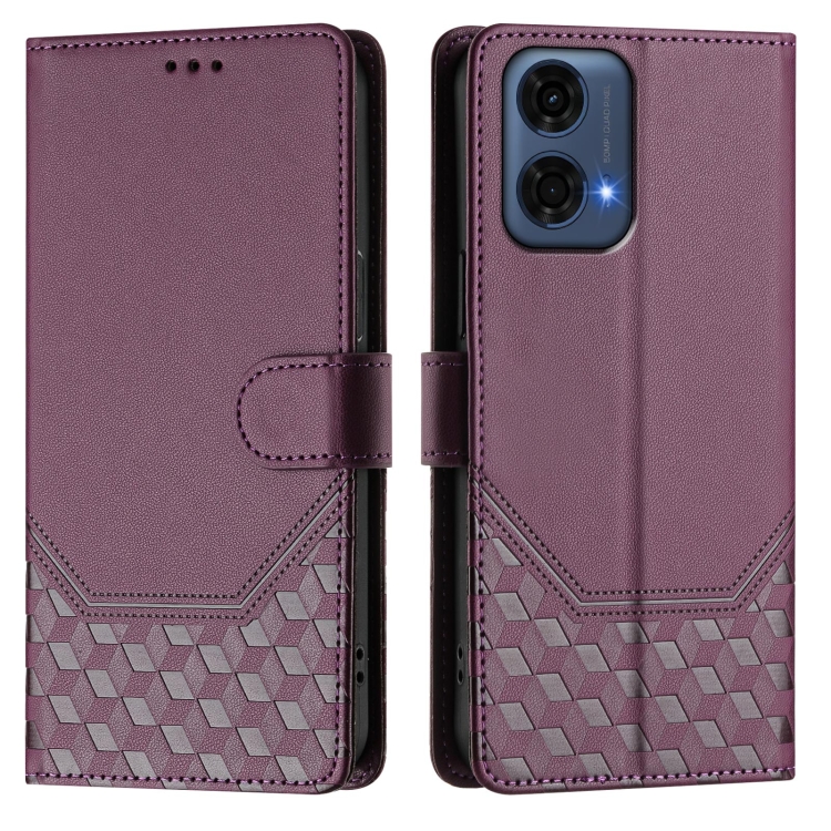 Funda de Cuero Rfid con Relieve en Panal para Motorola Moto G24 Power 4G (Violeta)