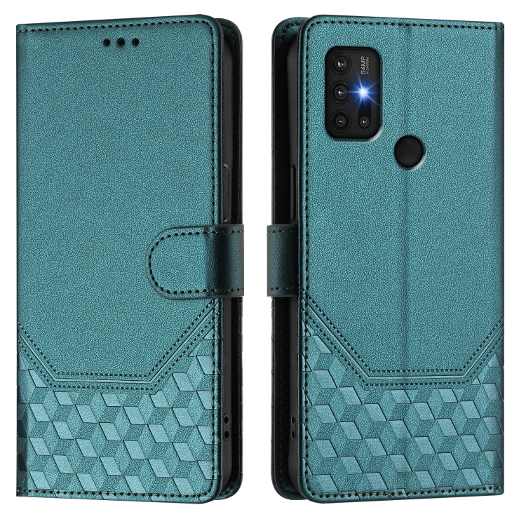 Funda de Cuero RFID con Relieve en Panal para Motorola Moto G30/G20/G10 (Verde Pavo Real)