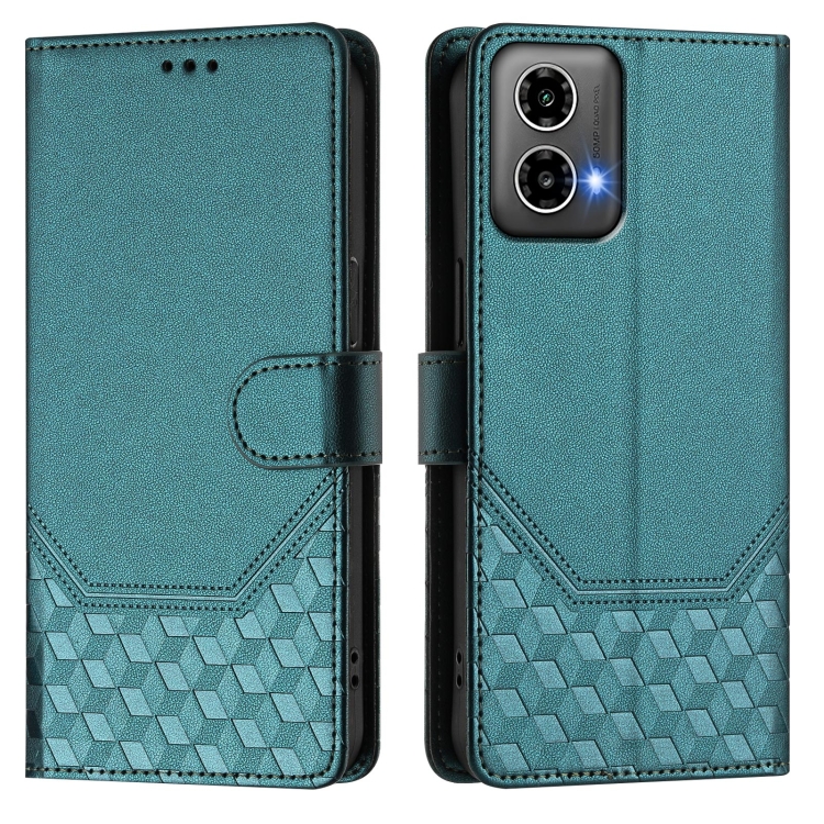 Funda de Cuero Rfid con Relieve en Panal para Motorola Moto G34 5G/G45 5G (Verde Pavo Real)