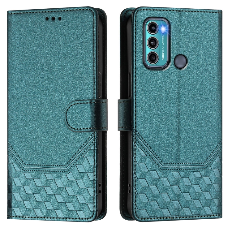 Funda de Cuero Rfid con Relieve en Panal para Motorola Moto G60/G40 Fusion (Verde Pavo Real)