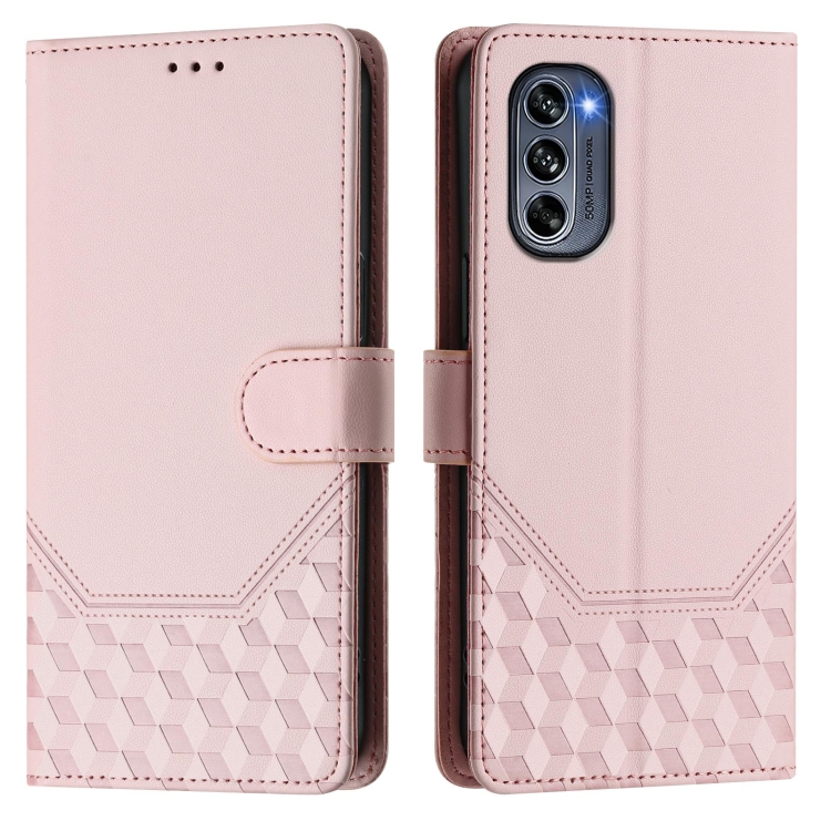 Funda de Cuero Rfid con Relieve en Panal para Motorola Moto G62 5G Global/India (Rosa)
