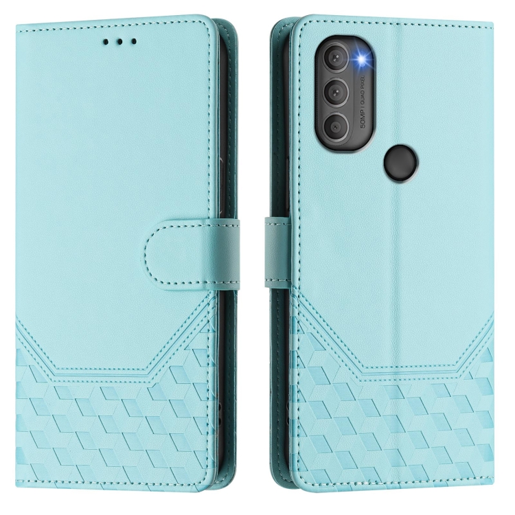 Funda de Cuero Rfid con Relieve en Panal para Motorola Moto G71 5G (Verde Menta)