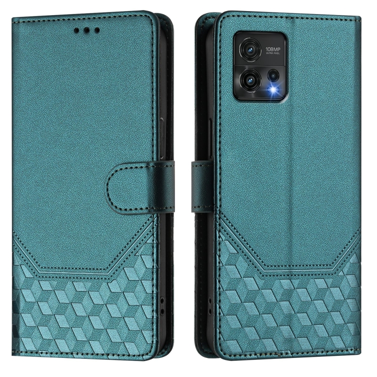 Funda de Cuero Rfid con Relieve en Panal para Motorola Moto G72 (Verde Pavo Real)