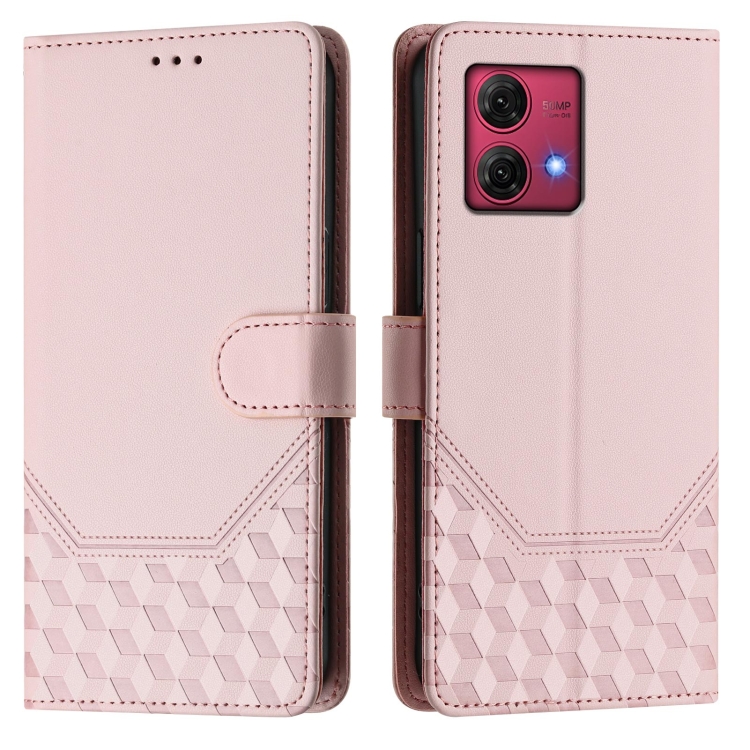 Funda de Cuero Rfid con Relieve en Panal para Motorola Moto G84 5G (Rosa)