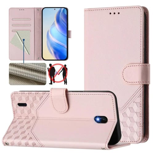 Funda de Cuero Rfid con Relieve en Panal para Nokia C01 Plus/C1 2.ª Edición (Rosa)
