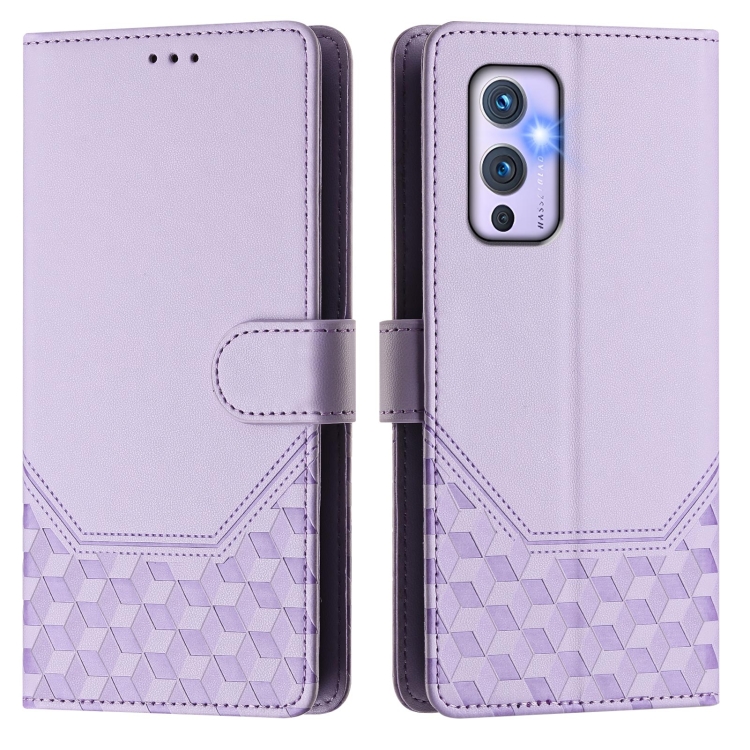 Funda de Cuero Rfid con Relieve en Panal para OnePlus 9 (Morado Claro)
