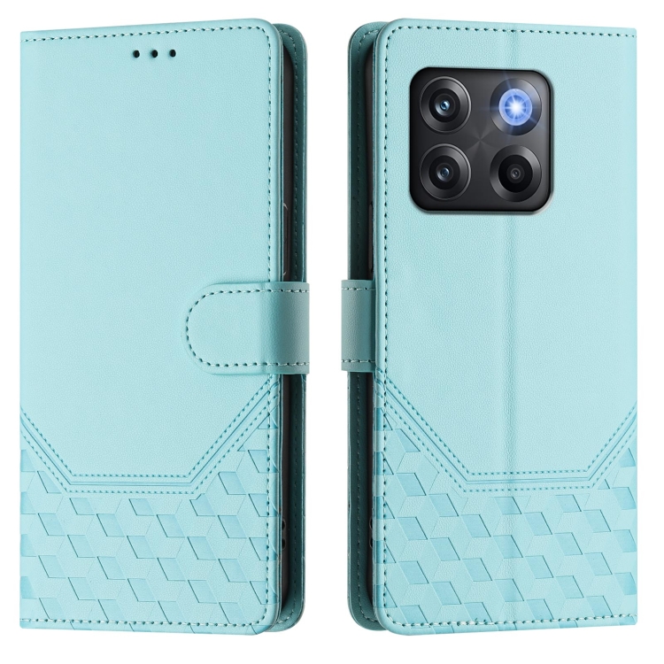 Funda de Cuero Rfid con Relieve en Panal para OnePlus Ace Pro 5G/10T 5G (Verde Menta)