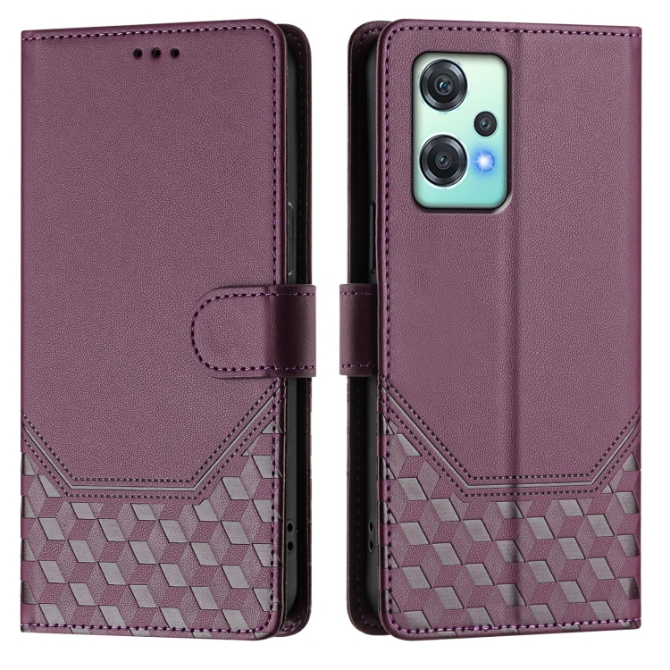 Funda de Cuero Rfid con Relieve en Panal para OnePlus Nord Ce 2 Lite/Nord 2 Lite (Violeta)
