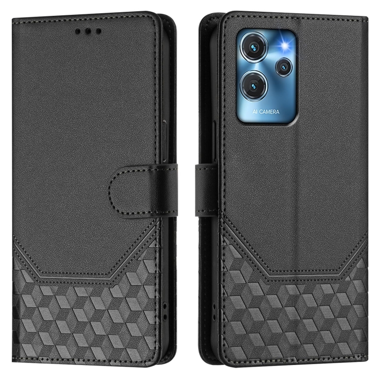 Funda de Cuero Rfid con Relieve en Panal para Oukitel C32 (Negra)