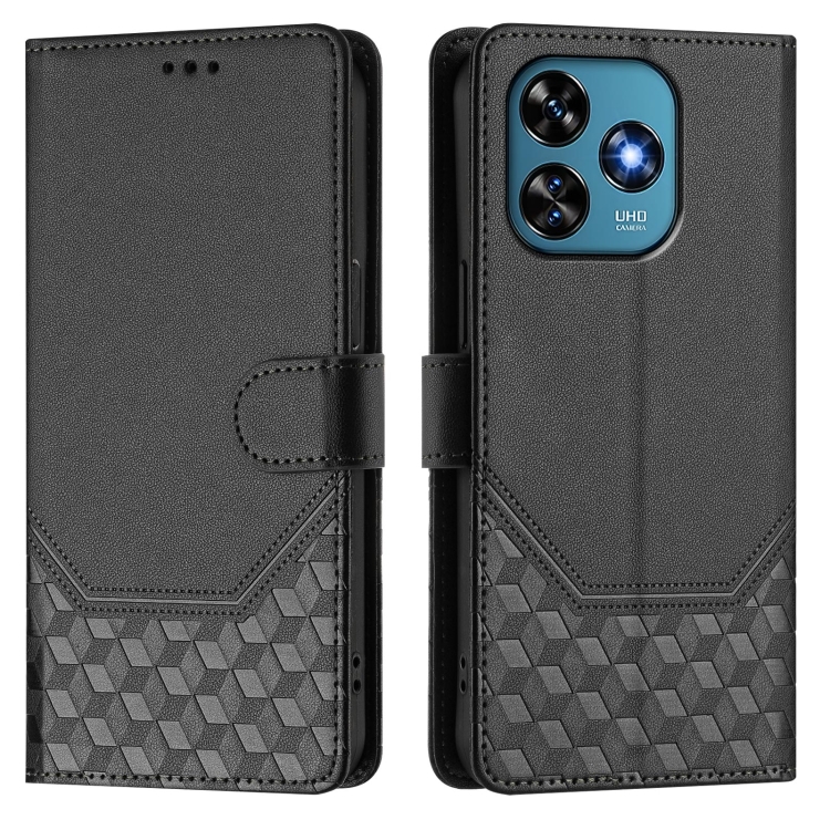 Funda de Cuero Rfid con Relieve en Panal para Oukitel C51 (Negra)