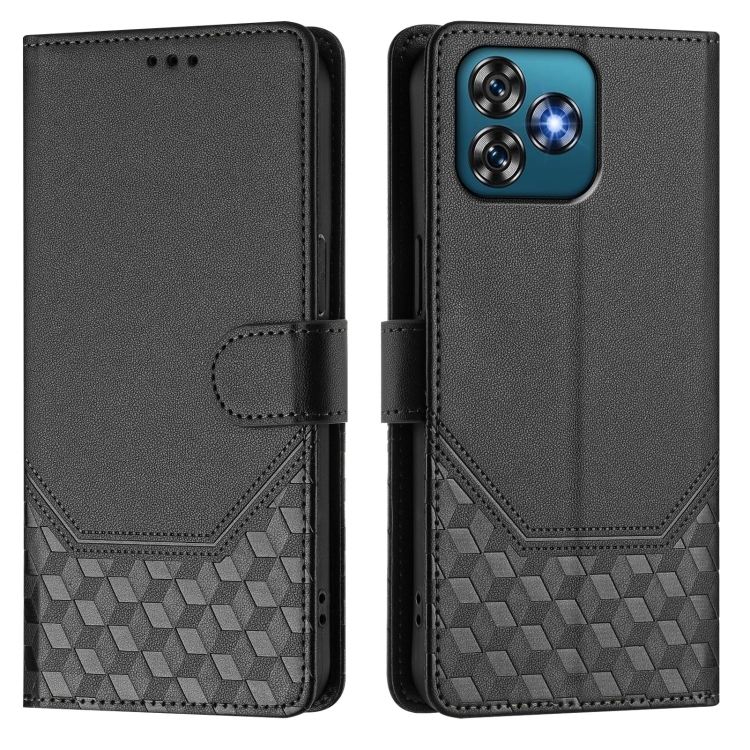 Funda de Cuero Rfid con Relieve en Panal para Oukitel C53 (Negra)