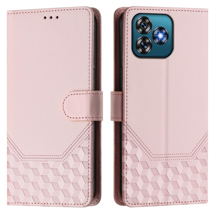 Funda de Cuero Rfid con Relieve en Panal para Oukitel C53 (Rosa)
