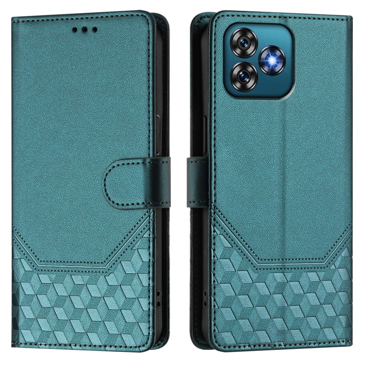 Funda de Cuero Rfid con Relieve en Panal para Oukitel C53 (Verde Pavo Real)