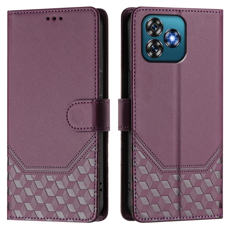 Funda de Cuero Rfid con Relieve en Panal para Oukitel C53 (Violeta)