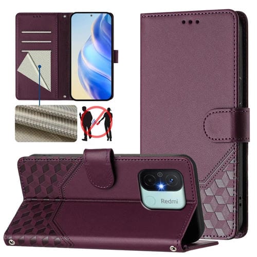 Funda de Cuero Rfid con Relieve En Panal para Redmi 12C/11A (Violeta)
