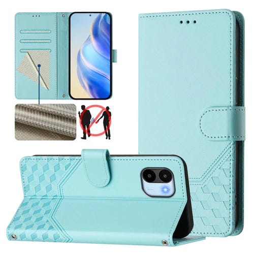 Funda de Cuero Rfid con Relieve En Panal para Redmi A1 4G/A2 4G (Verde Menta)