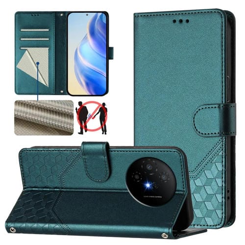 Funda de Cuero Rfid con Relieve en Panal para TCL 50 XL (Verde Pavo Real)
