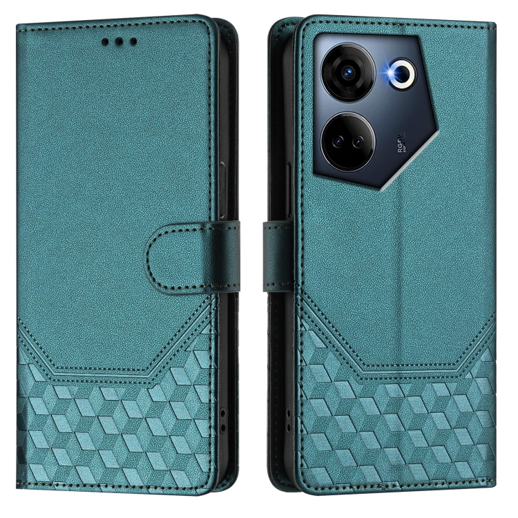 Funda de Cuero Rfid con Relieve en Panal para Tecno Camon 20 y Camon 20 Pro 4G (Verde Pavo Real)
