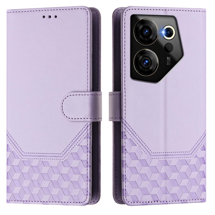 Funda de Cuero Rfid con Relieve en Panal para Tecno Camon 20 Premier 5G (Morado Claro)