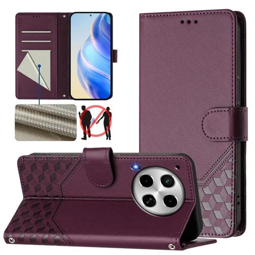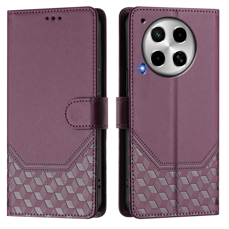 Funda de Cuero Rfid con Relieve en Panal para Tecno Camon 30 5G/4G (Violeta)