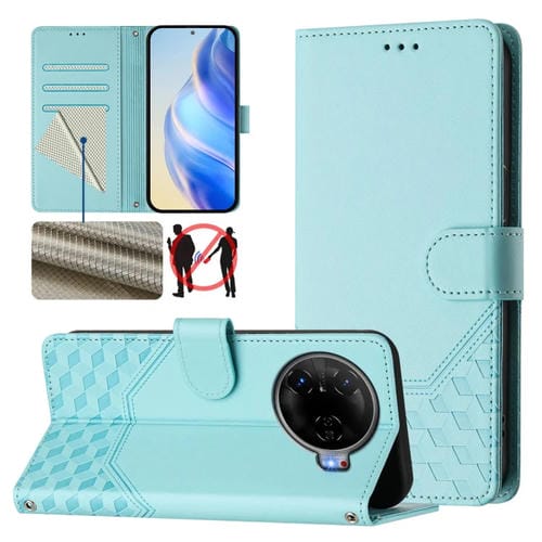 Funda de Cuero Rfid con Relieve en Panal para Tecno Camon 30 Pro 5G (Verde Menta)