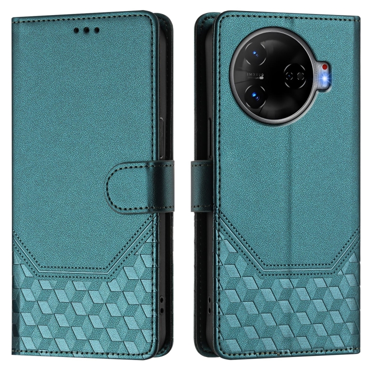 Funda de Cuero Rfid con Relieve en Panal para Tecno Camon 30 Pro 5G (Verde Pavo Real)