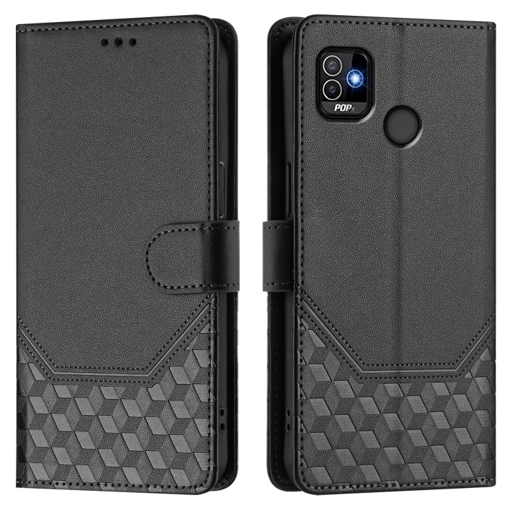 Funda de Cuero RFID con Relieve en Panal para Tecno Pop 5 (Negra)