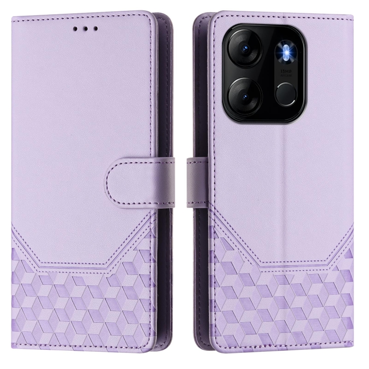 Funda de Cuero Rfid con Relieve en Panal para Tecno Pop 7/Pop 7 Pro (Morado Claro)
