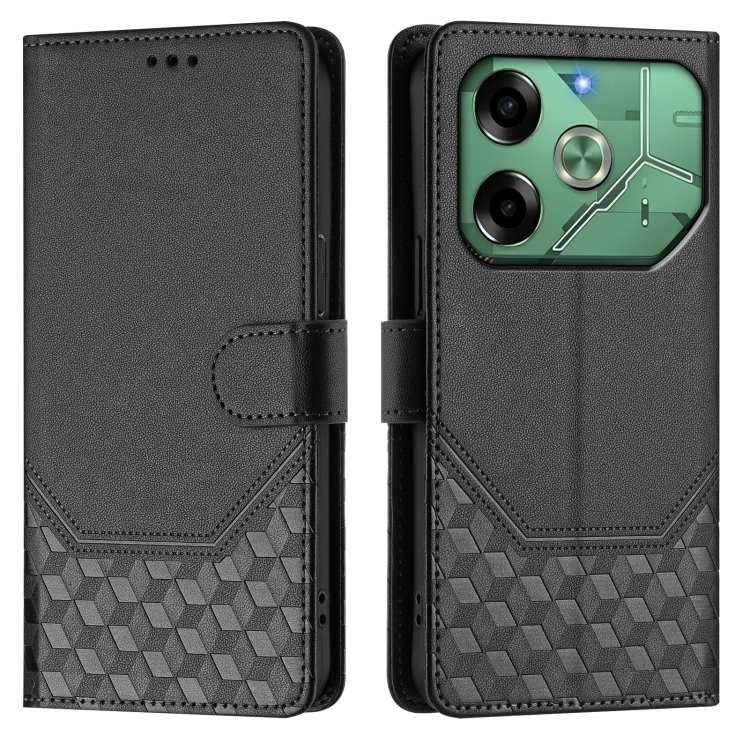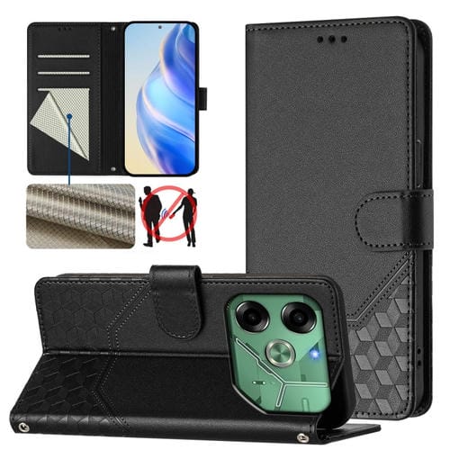 Funda de Cuero Rfid con Relieve en Panal para Tecno Pova 6 4G (Negra)
