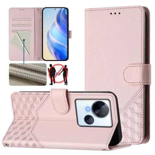 Funda de Cuero Rfid con Relieve en Panal para Tecno Spark 10 5G (Rosa)