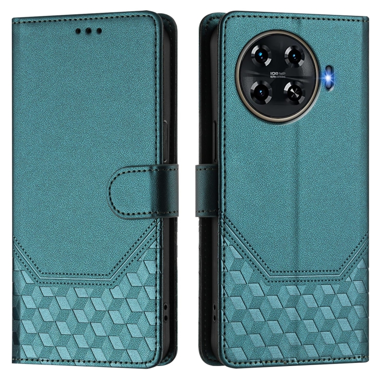 Funda de Cuero Rfid con Relieve en Panal para Tecno Spark 20 Pro+ 4G (Verde Pavo Real)