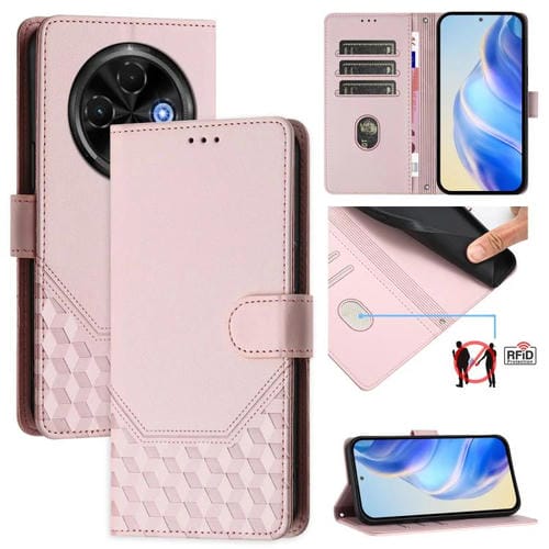 Funda de Cuero Rfid con Relieve en Panal para Tecno Spark 30C 5G y Pop 9 5G (Rosa)
