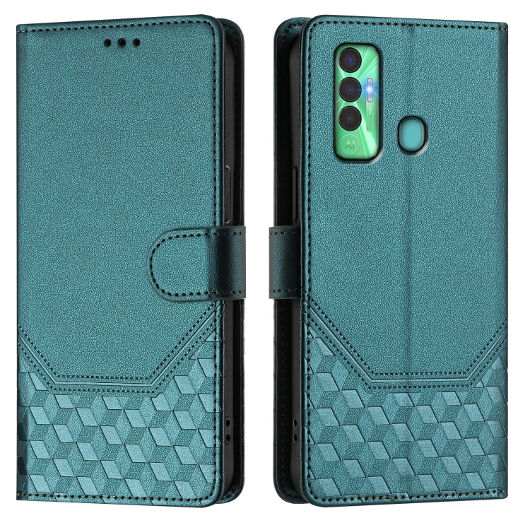 Funda de Cuero Rfid con Relieve en Panal para Tecno Spark 7P (Verde Pavo Real)