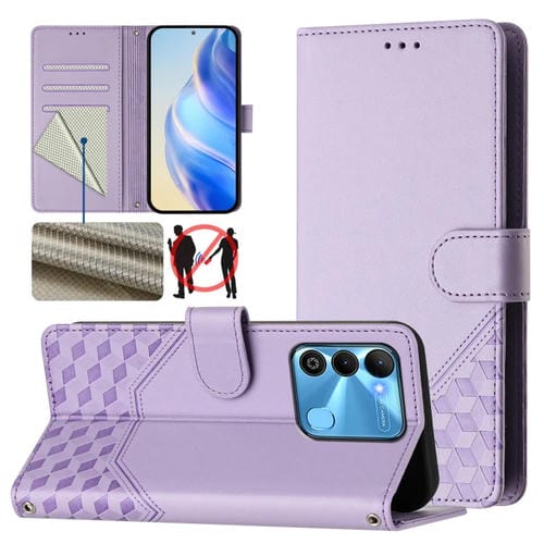 Funda de Cuero Rfid con Relieve en Panal para Tecno Spark 9 (Morado Claro)
