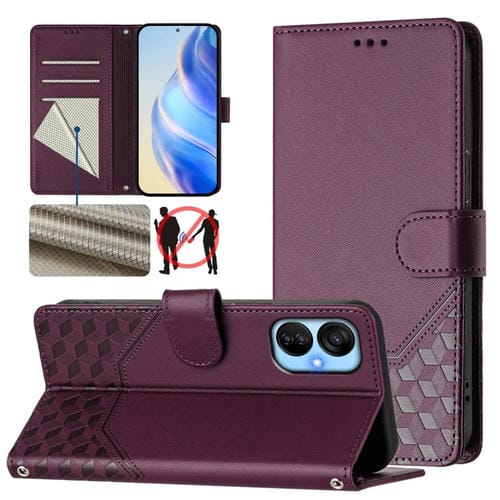 Funda de Cuero Rfid con Relieve en Panal para Tecno Spark 9 Pro/Spark 9T (Violeta)