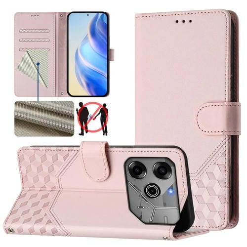 Funda de Cuero Rfid con Relieve en Panal para Tecno Spark Go 2021 (Rosa)