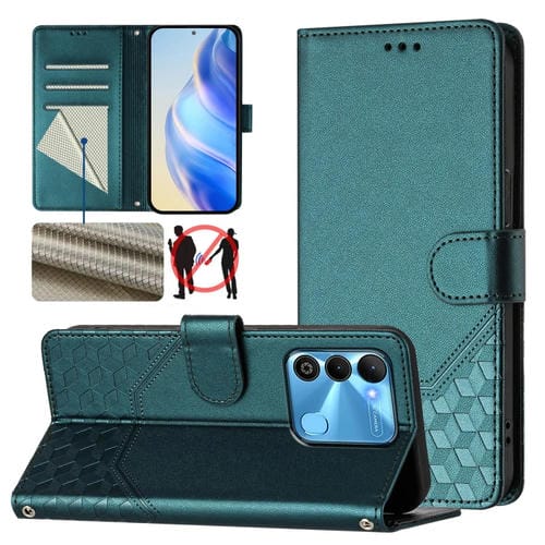 Funda de Cuero Rfid con Relieve en Panal para Tecno Spark Go 2022/Spark 8C (Verde Pavo Real)