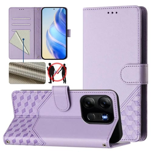 Funda de Cuero Rfid con Relieve en Panal para Tecno Spark Go 2023/Infinix Smart 7 (Morado Claro)