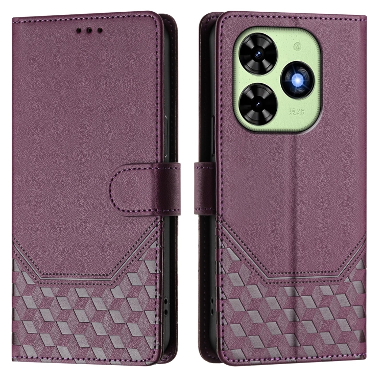 Funda de Cuero Rfid con Relieve en Panal para Tecno Spark Go 2024 4G (Violeta)