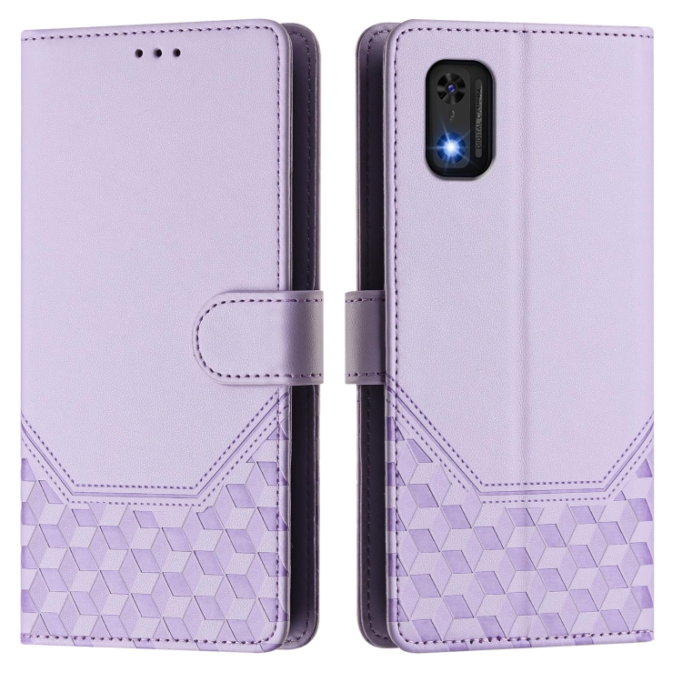 Funda de Cuero Rfid con Relieve en Panal para Teléfono Itel A23 Pro/A17 (Morado Claro)